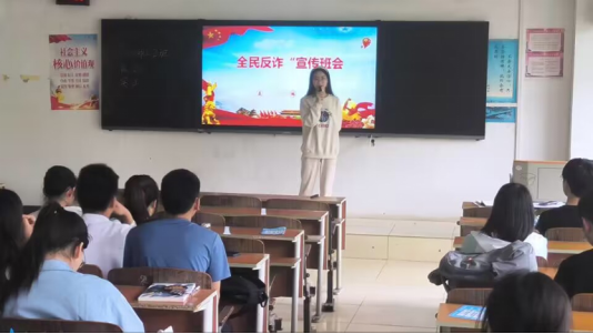组织开展“全民反诈”主题分享会。各班级通过同学们自己制作反诈PPT、播放视频、反诈案例分享、开展反诈总结大会等多种方式对当今社会网络诈骗典型案例进行了深入分析和讲解,普及防范电信网络诈骗知识,提高同学们甄别电信网络诈骗行为的能力。会间,同学们积极参与,踊跃发言,分享在反诈事件上自己的所闻所见所想,对电信网络诈骗有了深入的了解和警惕。