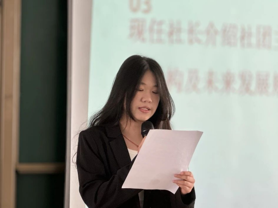成立仪式中,辩论队前队长刘星语及思辨社现任社长杨芝禾分别进行了发言。刘星语同学回忆最初的辩论队只有寥寥几人,勉勉强强将辩论队支撑到现在,后来逐渐发展壮大,从代表学院参加校辩论赛到代表学校参加校际联赛。这一路,是艰苦的,也是值得回味的。杨芝禾同学介绍了社团主要结构及社团未来的发展规划。她的发言鼓舞了在场的每个人,大家都对荆楚思辨社的明天满怀热烈希望。